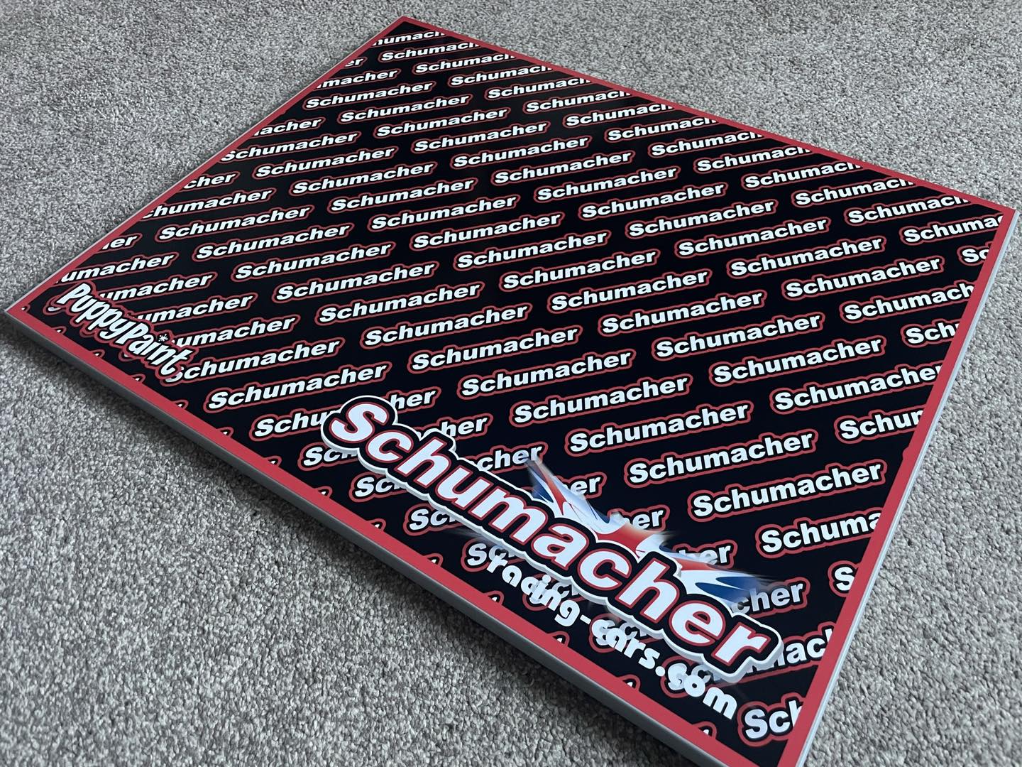 Custom design to stand out in the pits, 500 x 400 and 18mm thick.