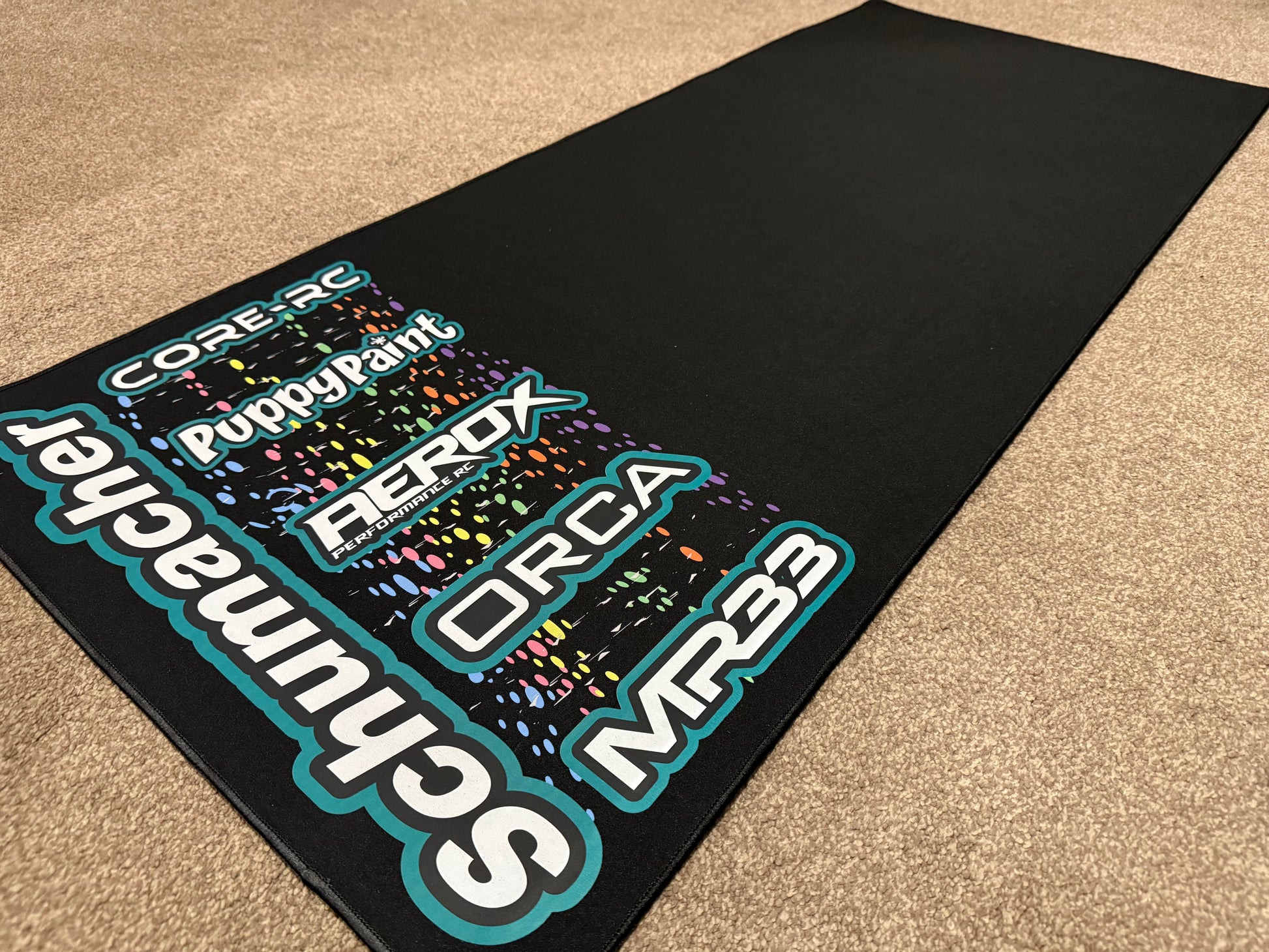 Style up your pit space with this custom pit mat, stitched edge with a rubber backing, 120cm x 50cm.