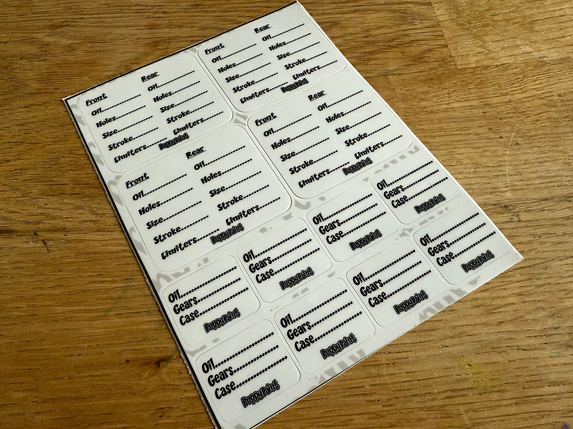 Identify spare shocks and diffs with these handy stickers.